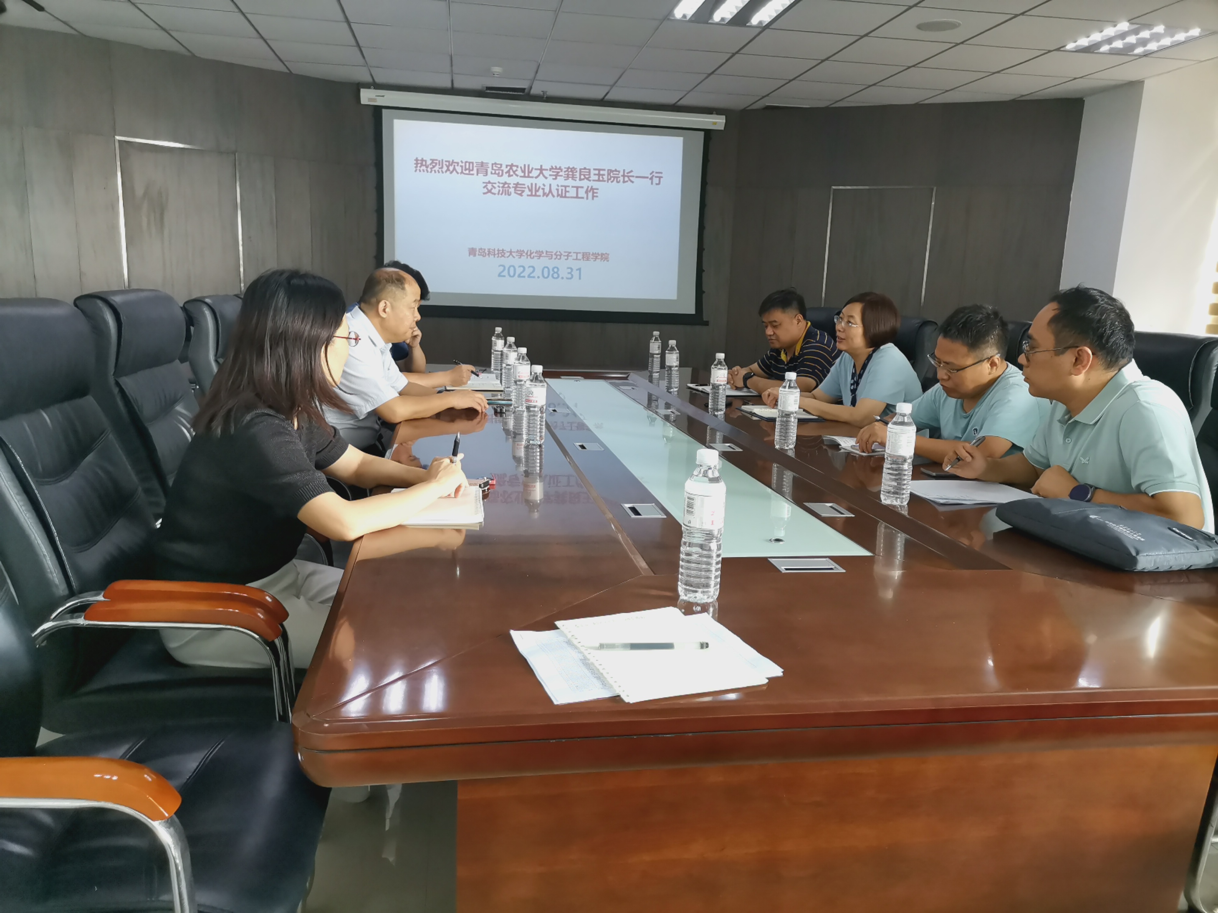 为进一步推进应用化学专业和化学工程与工艺专业的工程教育认证以及应用化学国家一流专业建设点、化学工程与工艺省级一流专业建设点的建设,2022.8.31上午,由龚良玉院长带队、主管教学的徐鲁斌副院长、化工与制药系主任杜春华、应化与药学系主任王修中一行四人,走访了青岛科技大学化学与分子工程学院。