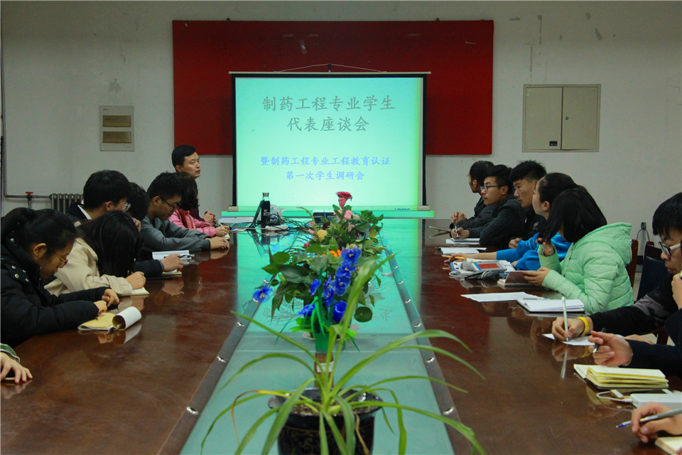 王辉以全国制药工程专业开设背景和发展历史为切入点,详细介绍了我校制药工程专业开设时间、发展特色以及发展现状,提出进行工程教育认证是制药工程专业发展的一个历史性转折点,能否通过认证直接影响未来的学科发展。同时,他结合中国工程教育专业认证、华盛顿协议等相关概念,指出我国工程教育认证的基本理念是:(1)学生中心;(2)产出导向;(3)持续改进,召开制药专业学生代表座谈会就是通过了解专业学生的实际情况和基本需求,为后续培养方案的修订提供支撑,更好的服务于学生为中心的理念。