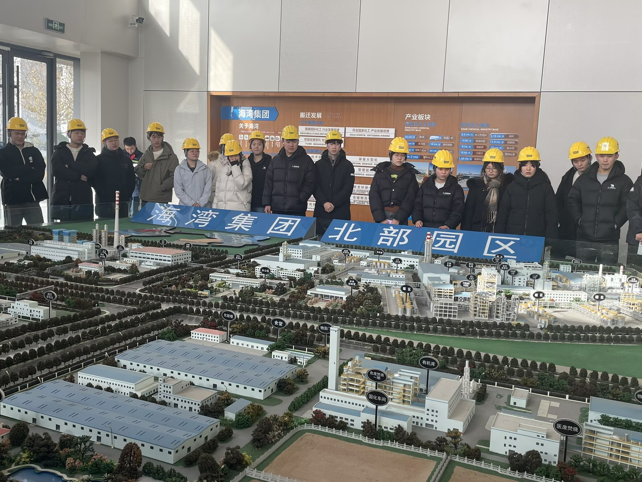 在海湾集团进行实地参观的过程中,企业负责人向师生介绍了海湾集团的发展历程、绿色化工理念与核心产品布局;人力资源部门则就人才招聘计划、培养体系及薪酬福利政策等内容作了详细说明,并欢迎同学们未来加入企业共同发展。在工作人员的引导下,同学们依次参观了产业园区、中央控制大厅与研发实验室,近距离了解了现代化工生产的整体流程、智能控制系统的运行方式以及技术研发的前沿动态,并与企业技术人员开展了现场交流。