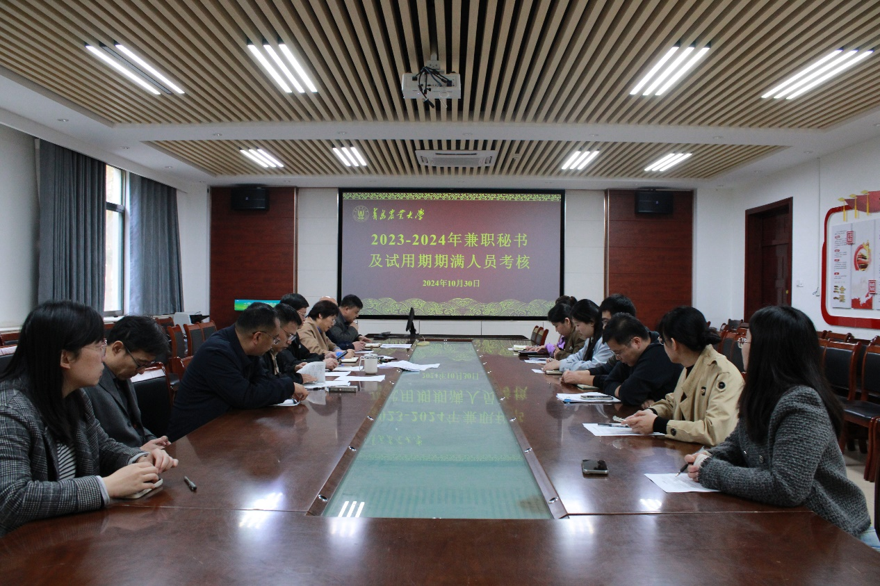 2024年10月30日,青岛农业大学45分钟过瘾拔萝卜视频于化学楼207对2023-2024年兼职秘书及试用期期满人员进行考核,学院党政联席会成员及各系主任出席考核会。