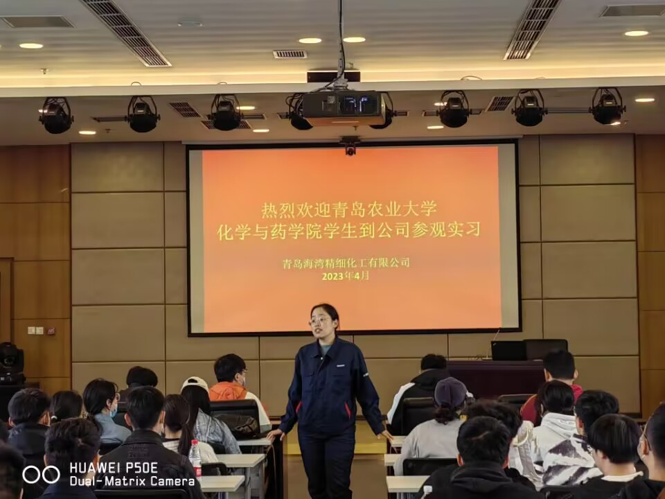 实习的第五天,同学们跟随带队老师,来到海湾精细化工有限公司,公司人力资源部表达了对实习同学和老师的欢迎,接下来分别由企业负责安全生产管理人员以及各部门技术人员对实习同学的安全培训和公司主要产品的特色及生产工艺进行了详细讲解,随后有安全员带领大家进入企业的生产区域和质量检测部门进行了参观实习。最后,带领大家参观了企业刚刚建成的全自动立体化仓库,同学们深切感受到现代化工企业技术革新的速度和现代仓储物流业的快速发展。下午,由来自企业四大部门的员工分别对本部门的生产装置以及流程工艺进行了详尽的说明。