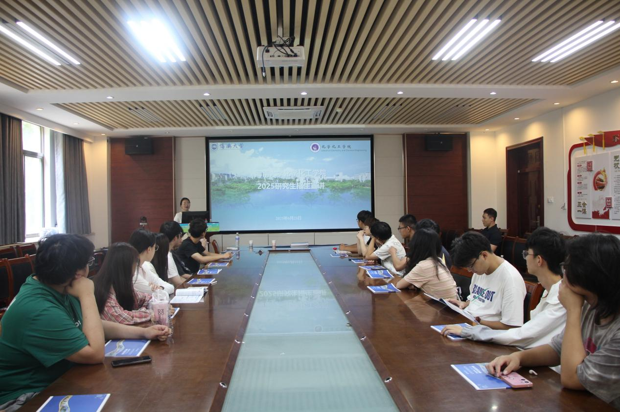 6月24日,海南大学化学化工学院招生负责人陈逸凡一行来我院开展研究生招生宣讲活动,本次宣讲于化学楼207会议室举行,陈逸凡主讲,学院2022级学生积极参与。