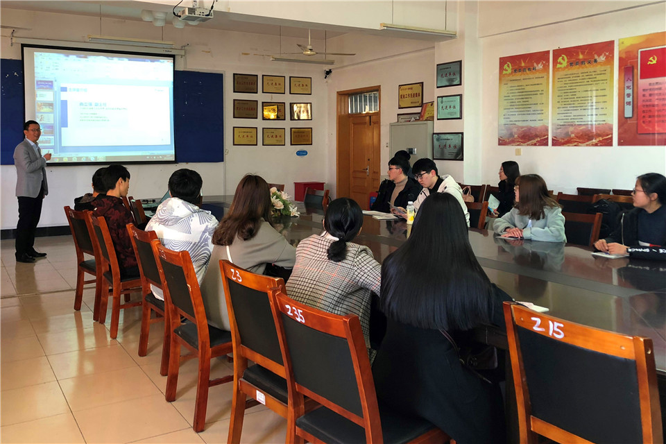 从公司基本情况、科研实力、人才培养方略、人才福利政策等四个板块展开宣讲。他立足公司实际,对企业生产水平规模、产品质量、研发体系、企业荣誉、发展前景等基本情况进行说明,详细介绍了公司所研发急性白血病药物的过程;他引学院师姐师兄发展实例,说明公司作为发展平台将大力发掘、专项培养优秀员工。互动环节中,毕业生积极就岗位工作内容、福利待遇等方面问题进行提问,曲立强耐心解答。最后,曲立强当场对有意向应聘的毕业生进行笔试与面试。