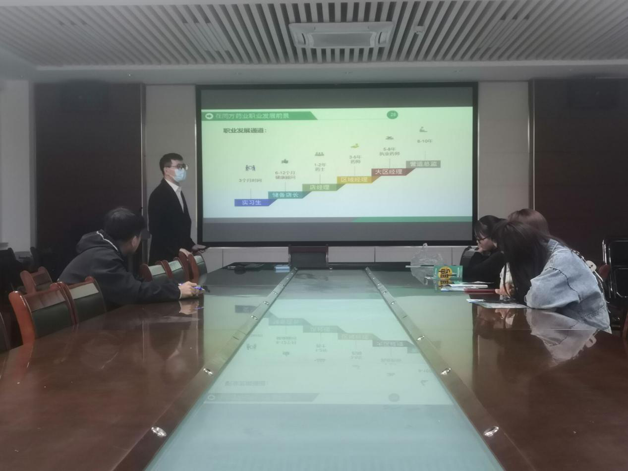 4月9日,青岛农业大学45分钟过瘾拔萝卜视频于化学楼会议室召开同方药业集团专场招聘会,同方药业人力资源部阎军超主讲,学院2021届毕业生代表参加。
