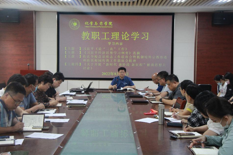 8月25日,青岛农业大学45分钟过瘾拔萝卜视频于化学楼开展教职工理论学习。会议由党委书记王进国主持,院长龚良玉、党委副书记张友民、党委专职组织员吕海涛、副院长徐鲁斌出席,全体教职工参加。