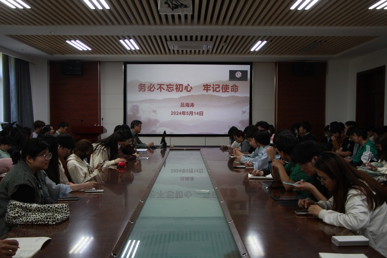 会上,吕海涛以“不忘初心,牢记使命”为主题,围绕“共产党员的责任与担当”两个关键点展开讲解,结合青年学子学习生活实际,对入党积极分子及党员发展对象提出了四点要求:一是不忘初心,方得始终。要坚定不移地听党话,跟党走,增强责任感和使命感,为同学们树立榜样;二是端正入党动机,深刻且清醒地明白党员不仅是政治身份,更是一种职责使命;三是从思想上入党,坚定理想信念,履行好党员责任,加强自我党性修养,做到“吾日三省吾身”,有立志为实现中华民族伟大复兴中国梦贡献力量的青春抱负;四是从行动上入党,在实践中勇于责任担当,根植矢志不渝的政治情怀,彰显青年一代应有的闯劲、锐气和担当。
