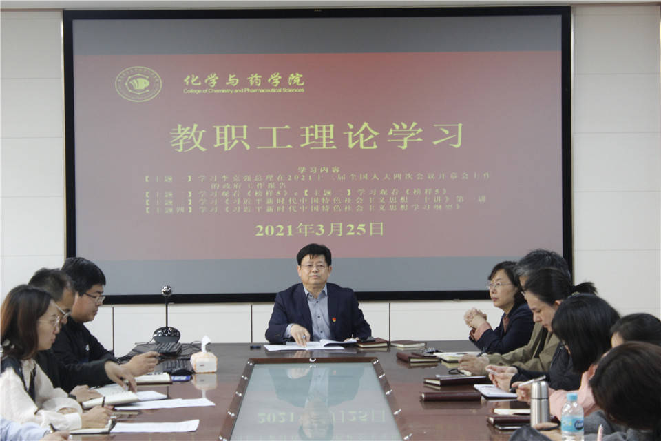 3月25日,青岛农业大学45分钟过瘾拔萝卜视频于化学楼会议室开展教职工理论学习,学院党委书记王进国、院长龚良玉、党委副书记史雪辉、专职组织员吕海涛、副院长郝双红出席,全体教职工参加。