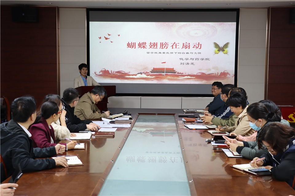 4月22日,青岛农业大学45分钟过瘾拔萝卜视频于化学楼会议室召开党史学习教育系列党课,教工党员刘清芝副教授以“蝴蝶翅膀在扇动——留学视角看疫情下的自由、人权与文明”为主题给与会党员教师上了一堂精彩党课,学院党委书记王进国主持。