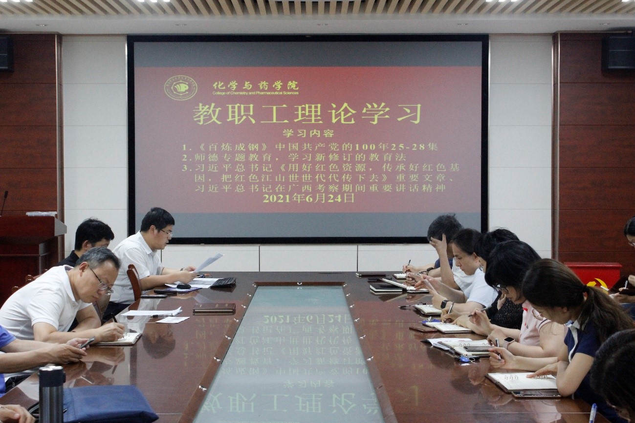 6月24日,青岛农业大学45分钟过瘾拔萝卜视频于化学楼会议室开展教职工理论学习。会议由学院党委书记王进国主持,党委副书记史雪辉、党委专职组织员吕海涛出席会议,全体教职工参会。