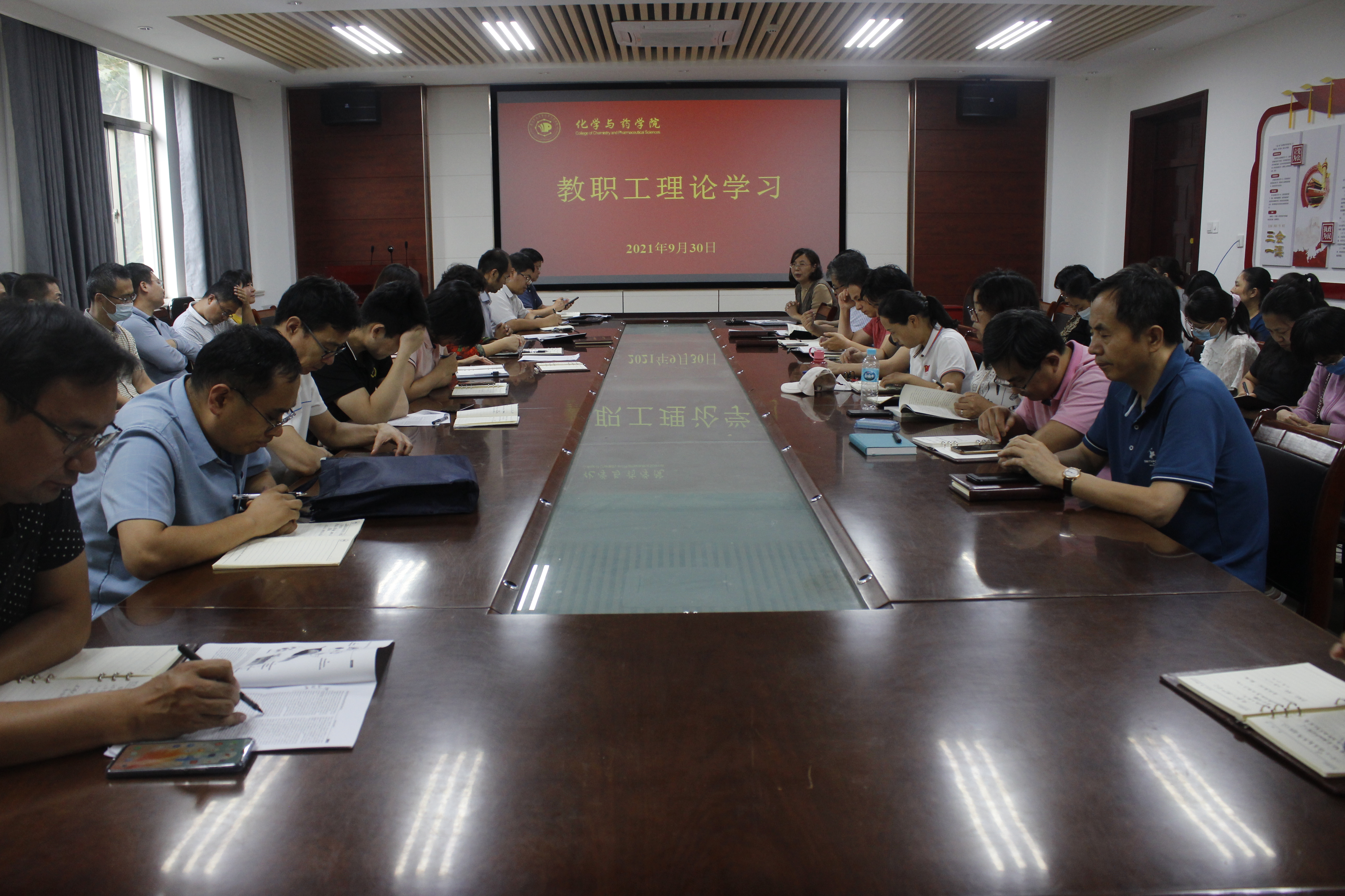 9月30日,青岛农业大学45分钟过瘾拔萝卜视频于化学楼会议室开展教职工理论学习。会议由学院党委书记王进国主持,院长龚良玉,党委副书记史雪辉、党委专职组织员吕海涛,副院长徐鲁斌、郝双红出席,45分钟过瘾拔萝卜视频全体教职工参加。
