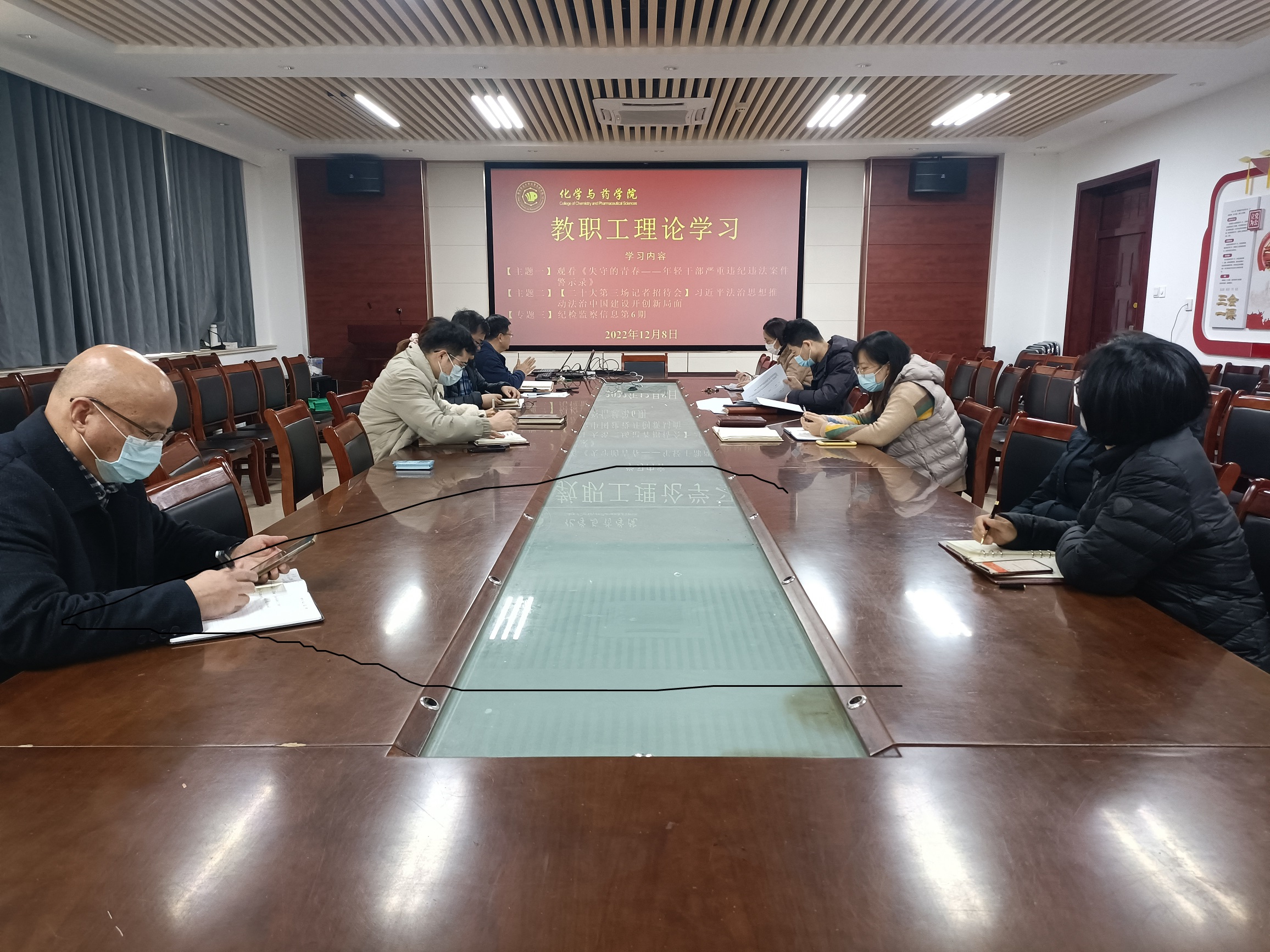 此外,王进国带领全体教职工还学习了习近平法治思想推动法治中国建设开创新局面,并就学校发布的纪检监察信息进行学习。