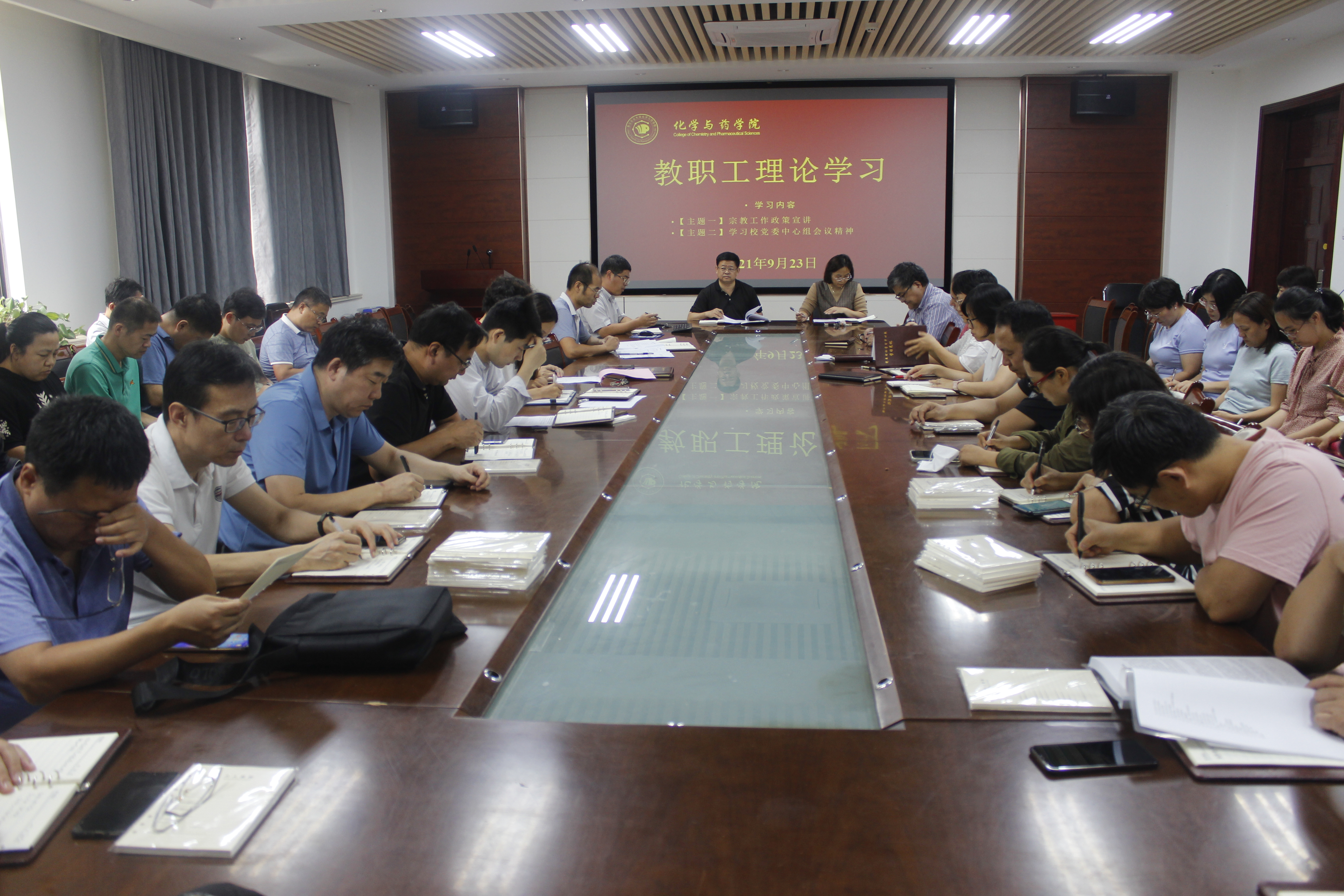 9月23日,青岛农业大学45分钟过瘾拔萝卜视频于化学楼会议室开展教职工理论学习。会议由学院党委书记王进国主持,院长龚良玉、党委副书记史雪辉、党委专职组织员吕海涛、副院长郝双红出席,45分钟过瘾拔萝卜视频全体教职工参加。