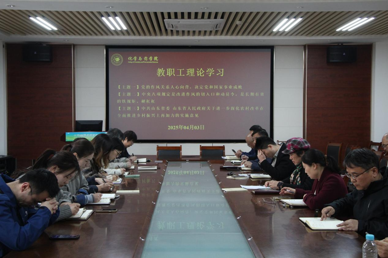 4月3日,学院于化学楼207开展教职工理论学习,学院党委书记王进国主持,全体教职工参加。