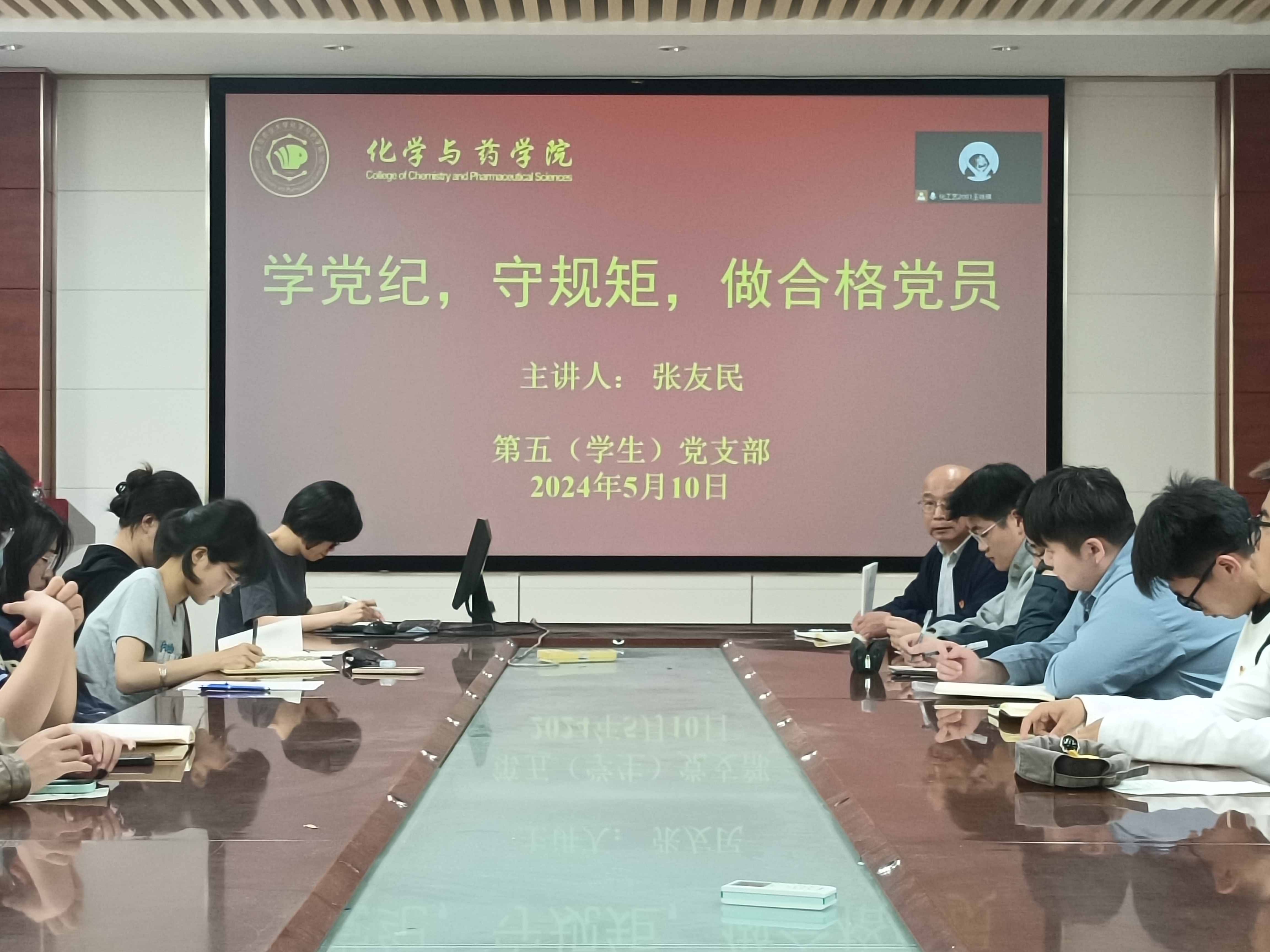 为加强党支部的纪律建设,学生党员始终做到学纪、知纪、明纪、守纪,5月10日,45分钟过瘾拔萝卜视频第五(学生)党支部于化学楼会议室开展党纪学习教育专题党课,本次党课以“学党纪,讲规矩,做合格党员”为主题,党支部书记黄海红主持会议,主讲人是院党委副书记张友民,第五党支部全体成员参加。