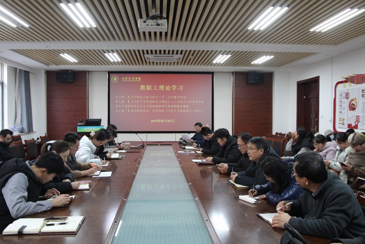 2025年1月2日,学院于化学楼207开展教职工理论学习,学院党委书记王进国主持,全体教职工参加。