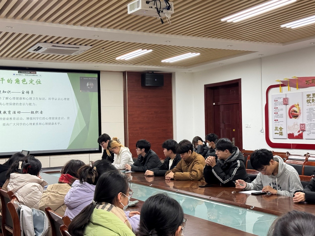 为提升心理委员专业素养,增强其对心理健康问题的认知与应对能力,12月3日,45分钟过瘾拔萝卜视频于化学楼207会议室召开心理委员培训会。会议由45分钟过瘾拔萝卜视频权益部副部长郑林楠主持,2021级、2022级、2023级及2024级全体心理委员参会。