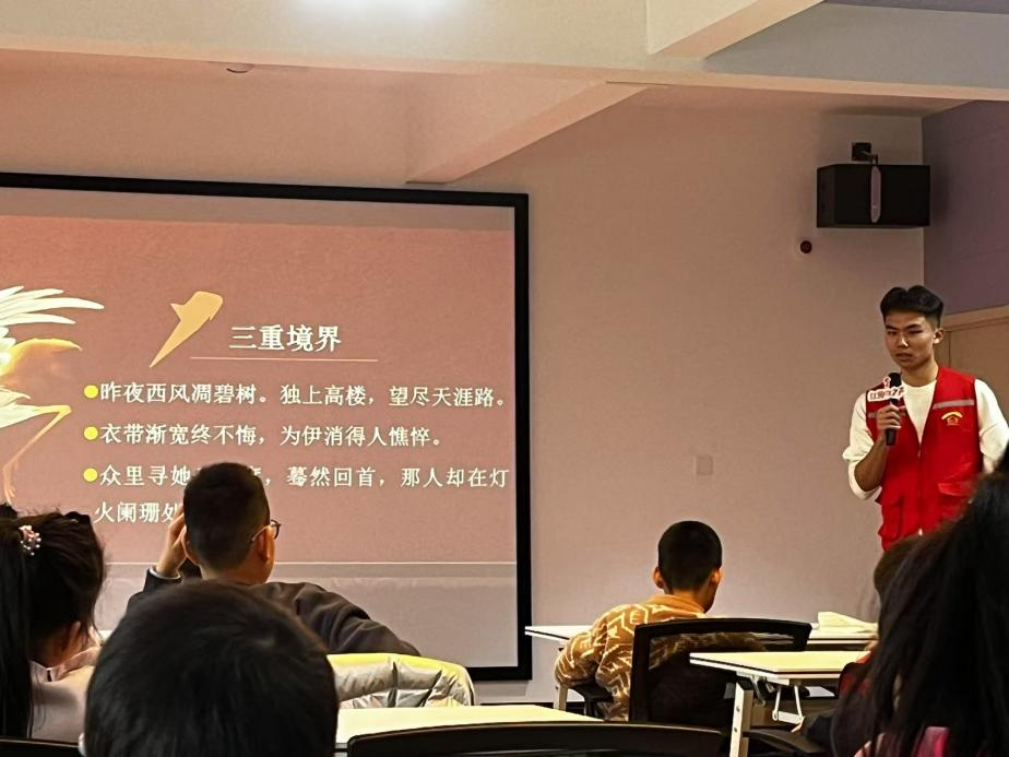 最后,实践队员带领孩子们体验《古诗中的真情》,队员们选取了多首具有代表性的宋朝诗词,从诗词的创作背景、诗人的生平经历讲起,让孩子们感受宋朝时期的历史风貌,增强了他们对家国情怀的理解。