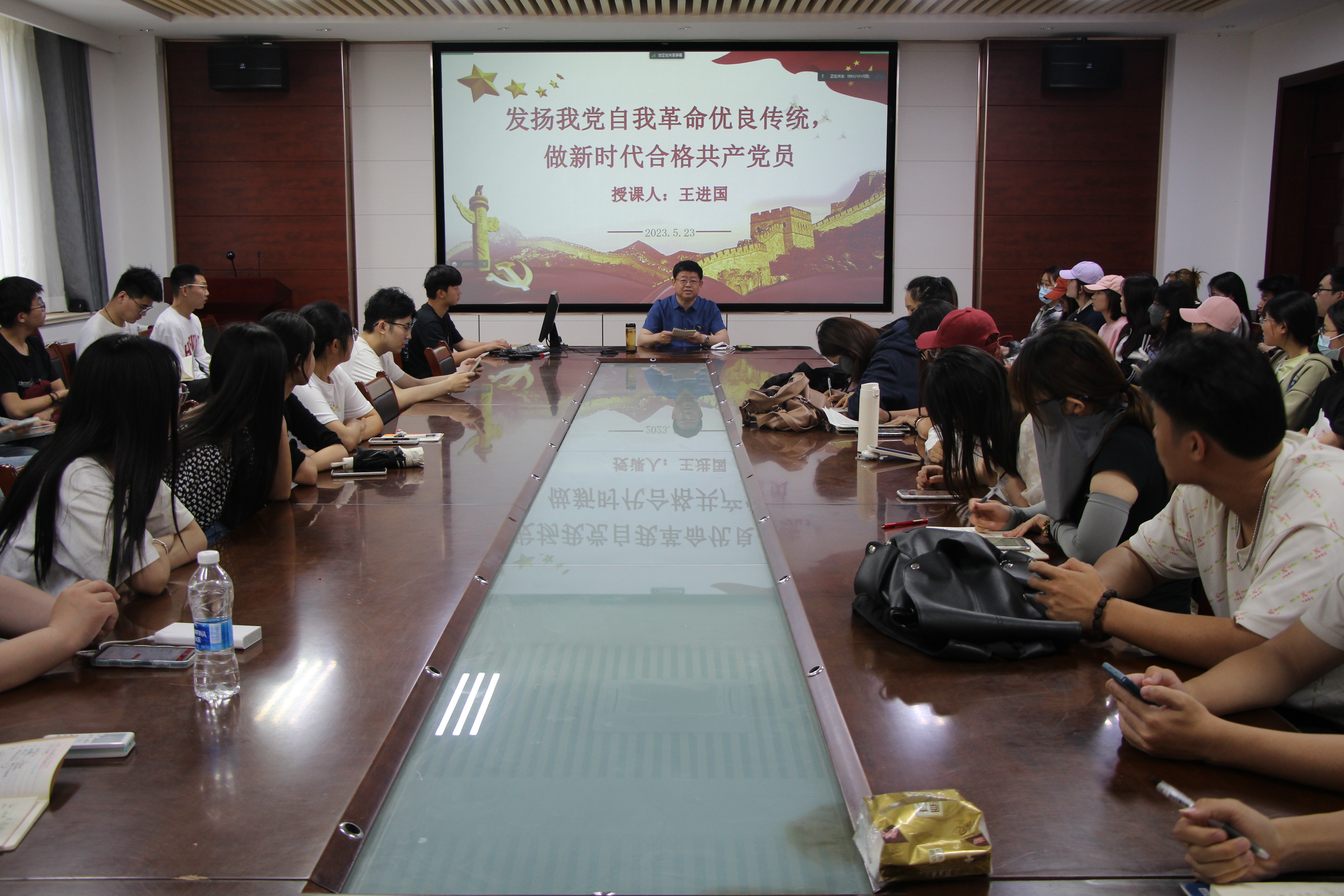 会上,王进国强调,勇于自我革命是中国共产党区别于其他政党的显著标志,是中国共产党人所具有的马克思主义政党先进性和纯洁性的集中体现,是党跳出治乱兴衰历史周期率、历经百余年沧桑更加充满活力的成功秘诀。要求全体学员一是要坚持党性要求,严格以党员标准审查自己,纠正自己;二是要经常开展自我反思,反思自己的思想、反思自己的行为,反思自己的学习、生活和人际交往,及时发现不足,纠正错误,不断自我完善;三是要以习近平新时代中国特色社会主义思想和党的二十大精神指引自己的言行,不断坚定自己的理想信念,践行“强国有我,请党放心”的铮铮誓言,做新时代合格党员。