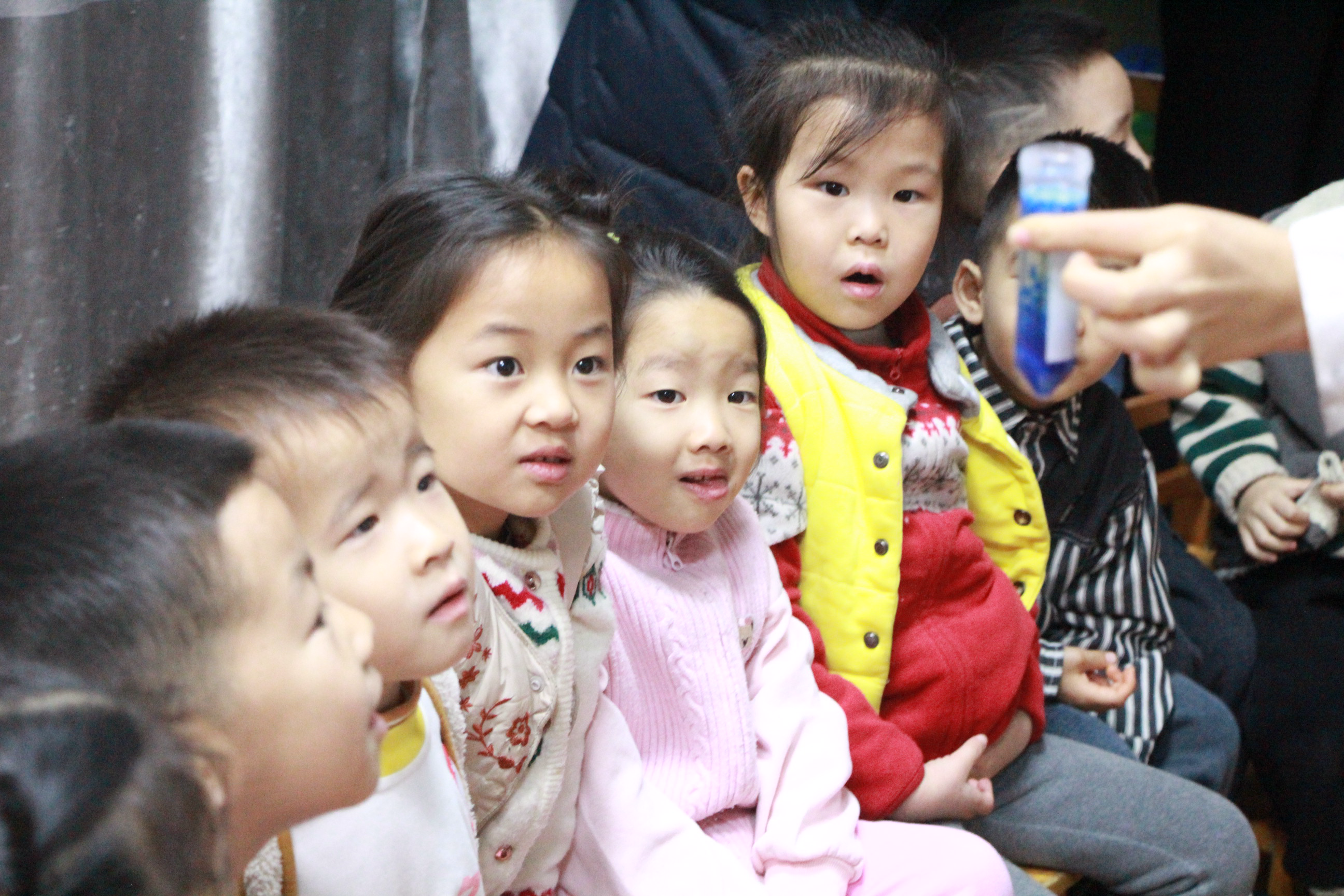 图为小朋友们看到实验现象的惊奇表情