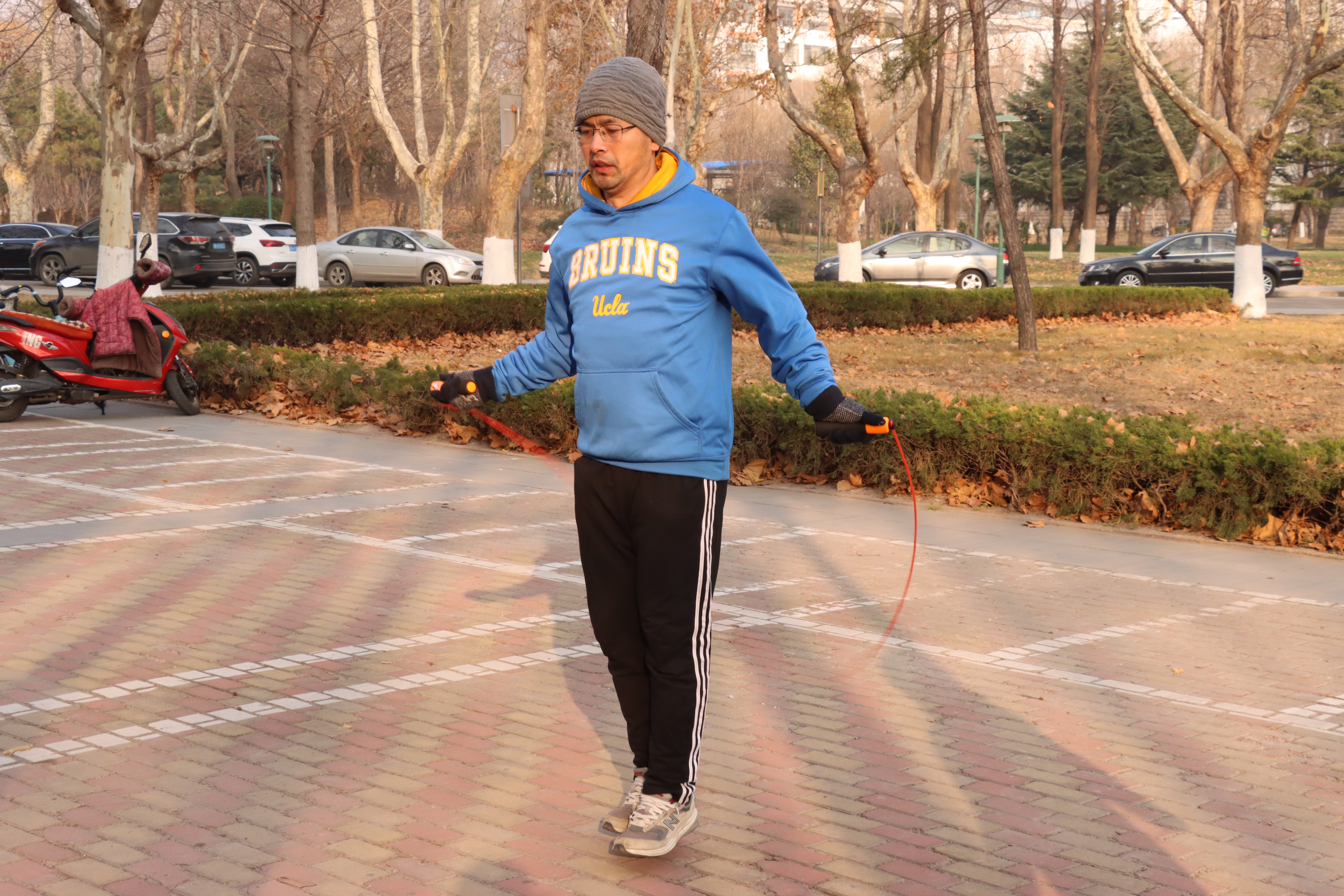 跳绳比赛中,老师们纷纷使出“看家本领”,在比赛场上“手舞足蹈”,变换不同跳绳花样进行比拼。