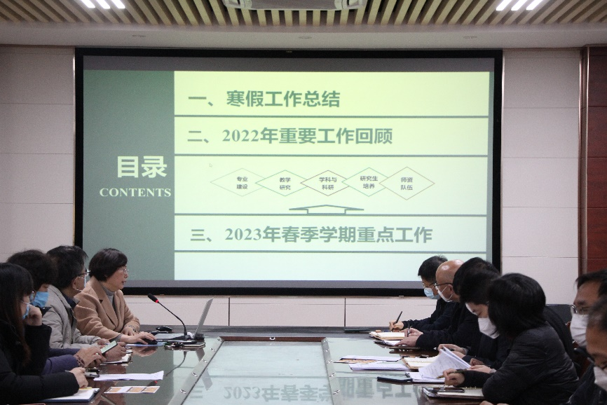 2月12日,院长龚良玉以《2022年工作回顾与2023年春季学期工作布置》为题,以专题报告的形式为学院全体教职工讲授“开学第一课”。龚良玉对全体教职工在专业认证、实验室建设规划、学科建设规划、假期科研工作开展等方面的工作给予了充分肯定,并结合学院实际,对新学期学院专业建设、教学改革研究、学科与科研发展、研究生工作、师资队伍建设等方面的工作进行了安排部署,动员全体教职工新学期要踔厉奋发、勇毅前行,推进学院实现新发展。