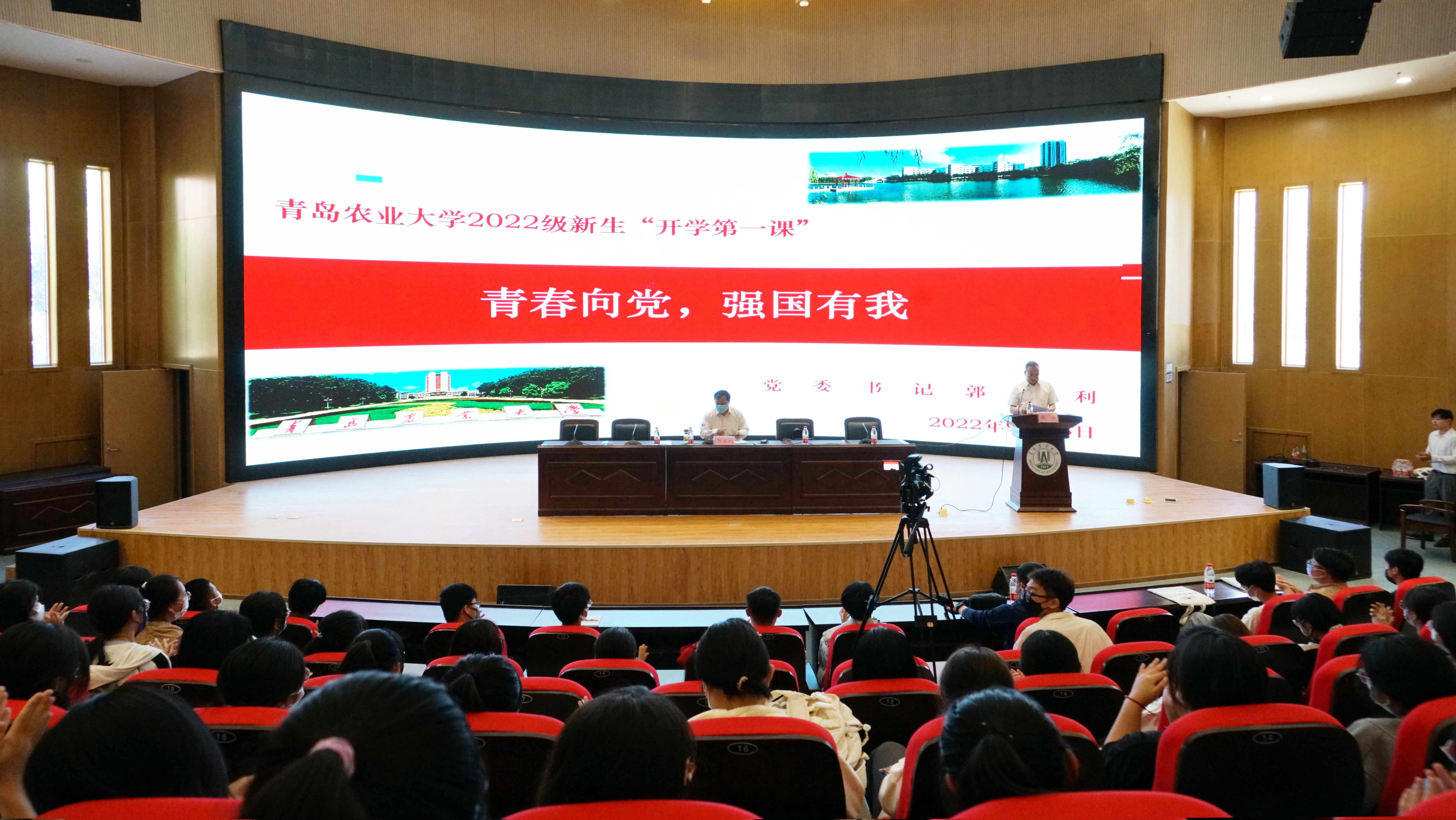 郭善利首先对2022级新同学加入青岛农业大学大家庭表示热烈欢迎,结合自身经历,带领同学们了解学校的历史、优势学科、优秀师资和蓬勃发展历程,指出全体新生要践行习近平总书记的殷殷期盼,为建设社会主义现代化强国、实现中华民族的伟大复兴做出应有的贡献。
