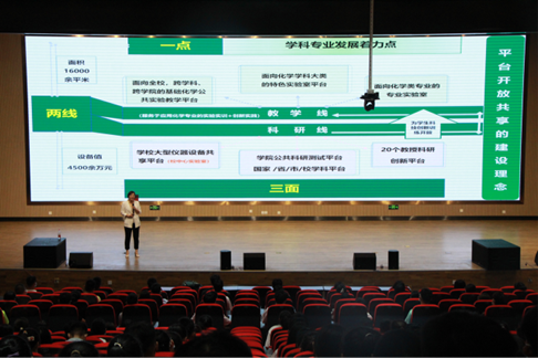 龚良玉首先代表学院党政领导及师生向新同学表示热烈的欢迎,随后从师资队伍、专业建设、科学研究、学科发展、学生工作等五个方面针对学院发展历程和取得成果进行了详细介绍。面对朝气蓬勃的2022级新生,龚良玉提出了几点期望:一是要厚植家国情怀,传承民族精神,做到自觉的把个人的理想追求融入国家和民族的事业中,在新时代中国特色社会主义的伟大实践中,筑牢“守正、创新、自信、进取”的精神之基;二是要为学以勤,做博学笃行的化药人,做到“德教为先,修身为本”,立足专业,刻苦精进,积极探索,勇于创新;三是要遵规守纪,做品学双进的化药人,做到遵守学校的规章制度,尊师重道,团结同学;四是要见贤思齐,做追求超越的化药人,做到学习榜样精神,在优秀青农人的名册上也骄傲的刻上属于自己的名字。