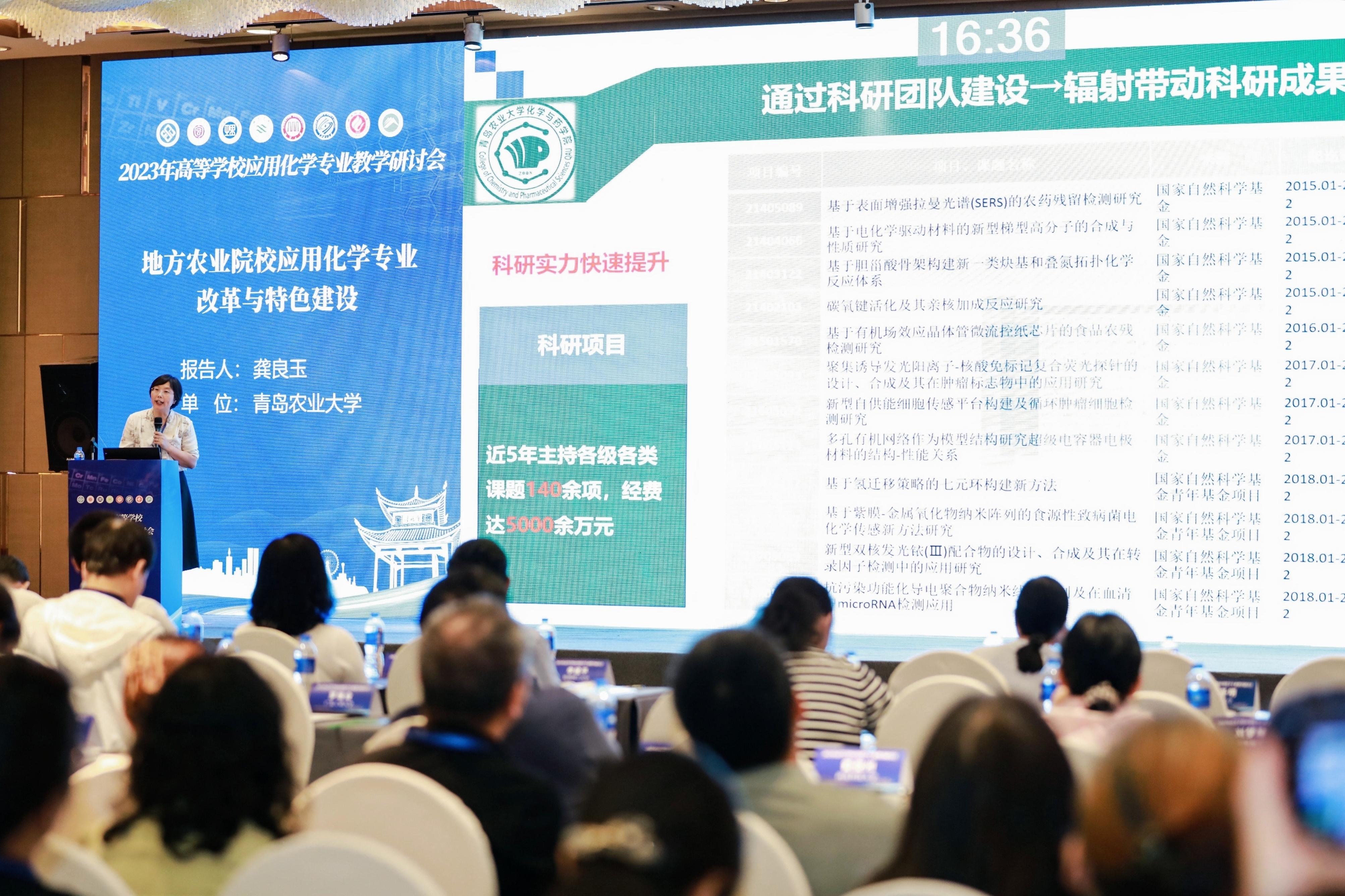 本次大会以“新时代应用化学专业的创新建设”为主题,邀请了18位业内资深专家学者,从不同的角度聚焦应用化学学科发展、应用化学专业认证、一流专业建设、特色方向建设、特色课程(群)建设等核心问题,共谋新时代应用化学专业创新发展大计,对推进应用化学专业教学改革和教学建设,提升应用型人才培养的能力和水平具有重要作用。院长龚良玉受邀做大会报告“地方农业院校应用化学专业改革与特色建设”分享我院应用化学专业近年来所做的改革措施及建设成效,获得了与会专家的广泛好评。