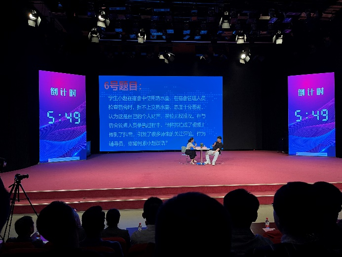 本届辅导员素质能力大赛自3月份启动,共100名辅导员参赛,本次比赛分初赛、复赛两轮选拔,遴选13名优秀选手进入决赛,最终有来自11个学院的13名选手进入决赛。决赛设有谈心谈话和主题宣讲两个环节,入围决赛的选手依次上场展开比拼。在谈心谈话环节,聚焦情景模拟中学生存在的慢就业、心理焦虑等问题,考察了辅导员对学生特征、学生成长成才规律的了解把握程度,对学生的教育引导能力、解决理论困惑和实际问题的能力。主题宣讲环节,我院辛鑫老师以《筑牢思想根基,书写青春答卷》为题,结合先进事迹,用生动精炼的语言讲政策、讲理论、讲案例,展现了良好的语言表达能力和逻辑思维水平。