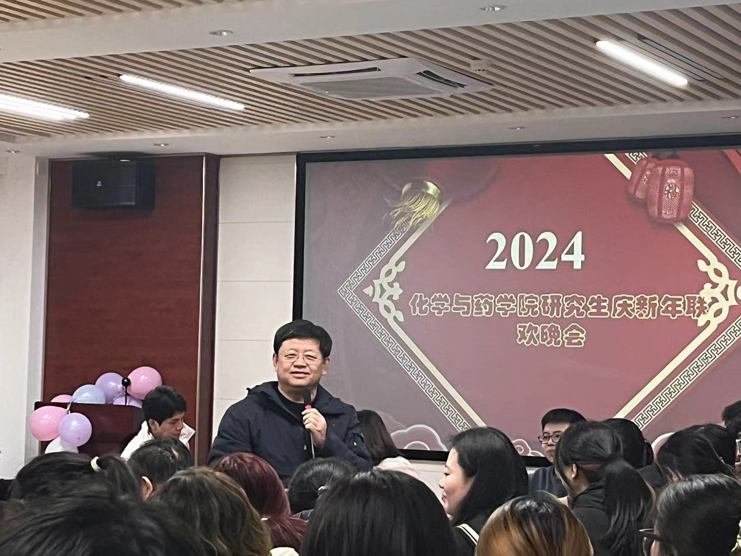 晚会伊始,王进国发表致辞,表达了对研究生们的深切期望与美好祝福。他表示,2023年学院各个方面取得的优异成绩离不开研究生的努力与付出,希望在2024年全体研究生继续勇担责任、真抓实干、脚踏实地,再创化药学院新的辉煌。