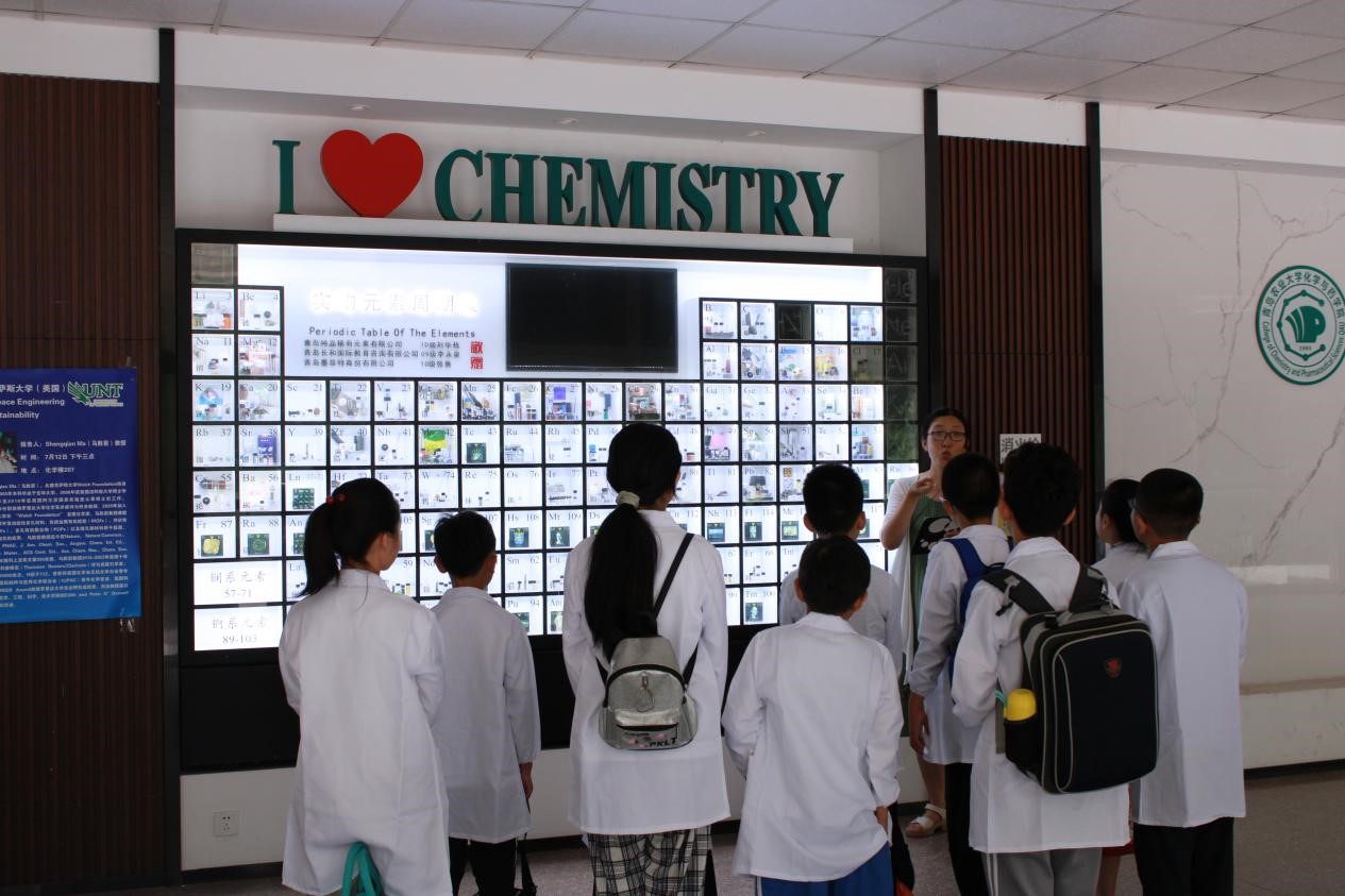 活动伊始,学员们参观了陈列在化学楼一楼的实物元素表,宁静老师为学员详细讲解实物版化学元素周期表,让同学们直观感受化学元素的奇妙排列,将课本知识带入现实。由生活中常见的事物,将同学们引入化学的大门。