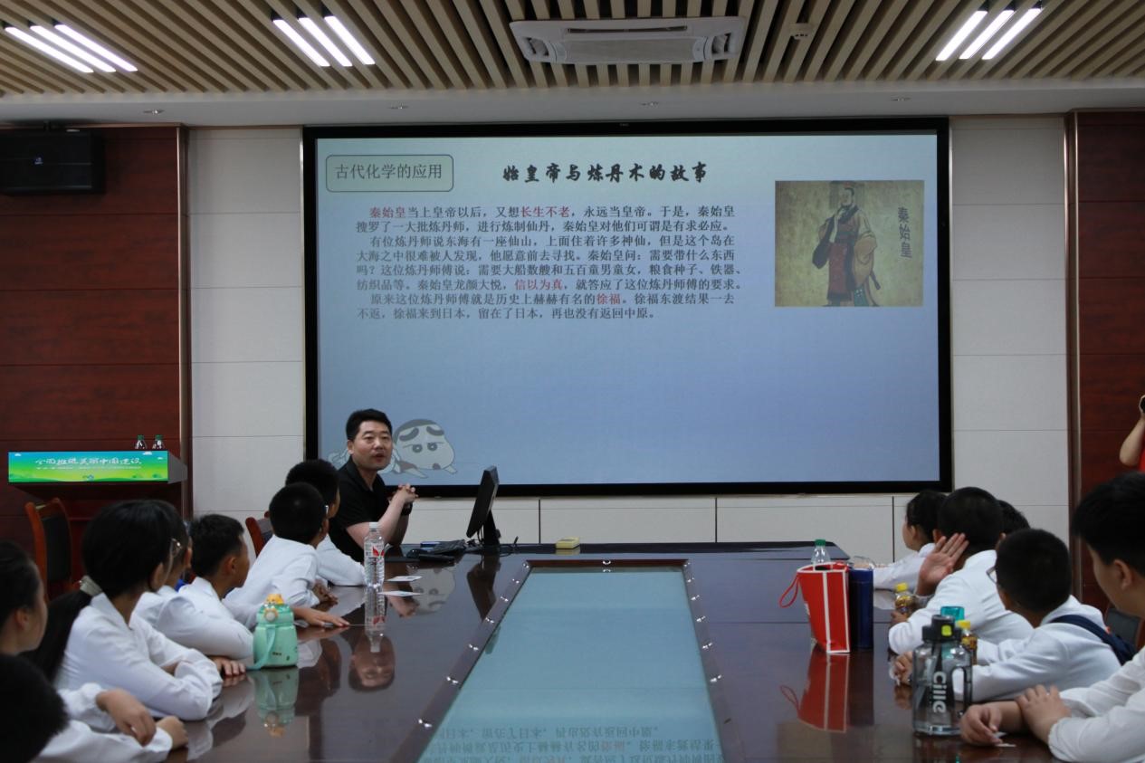 李帅帅老师以同学们感兴趣的秦始皇炼丹的故事为引,深入浅出地讲解化学发展史,展现化学从无到有、不断发展壮大的历程。王辉老师介绍化学与材料、能源、环境的关系以及在衣食住行等日常生活中的广泛应用,让大家深刻体会到化学无处不在,与日常生活有着紧密的联系。