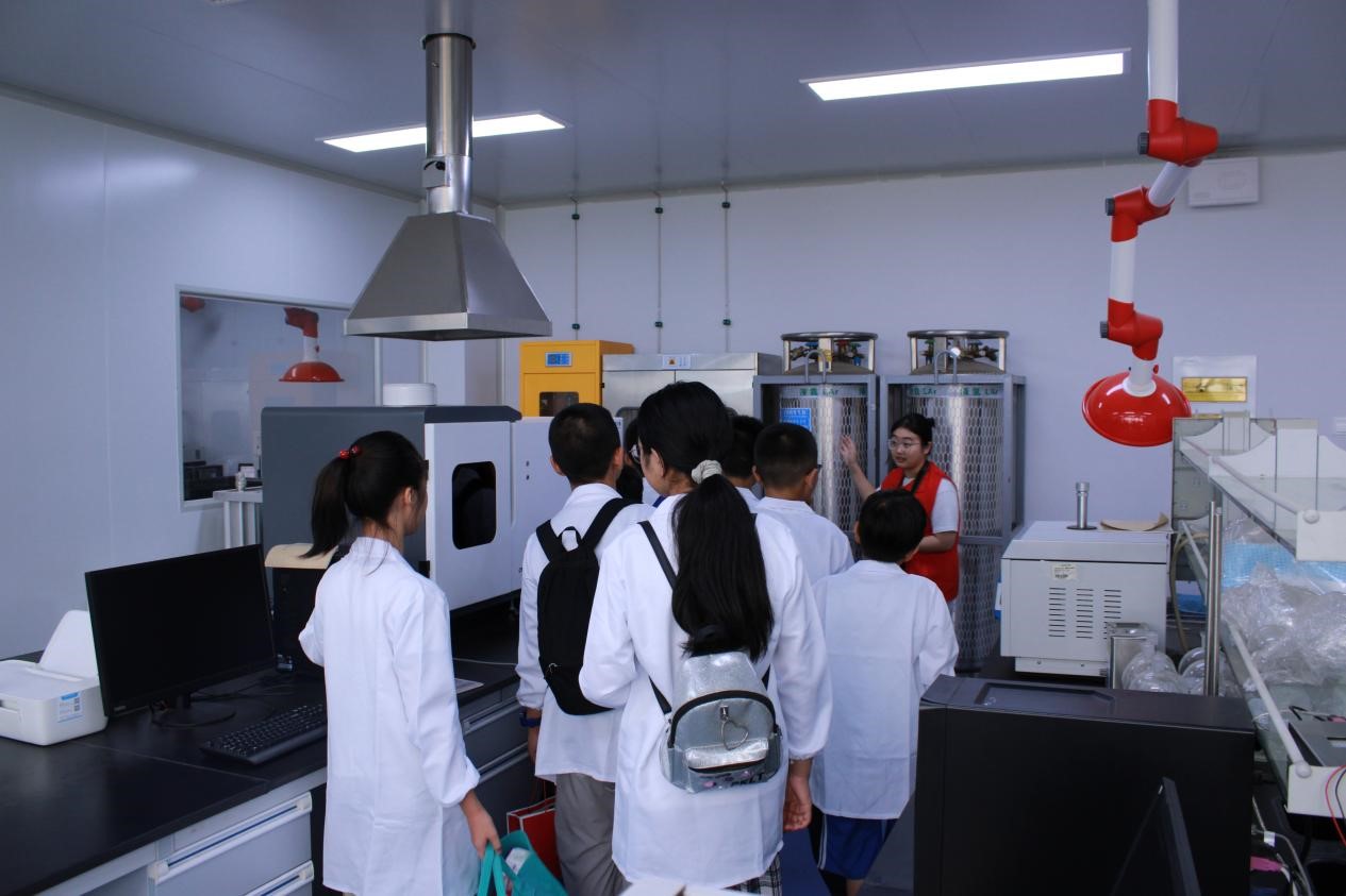 在志愿者的引领下,学员们参观了化学实验室和仪器测试平台。在王修中老师的精彩讲解下,同学们近距离观看了先进的实验设备,感受到了科学研究的严谨氛围,也在他们心中种下了科学萌芽的种子。