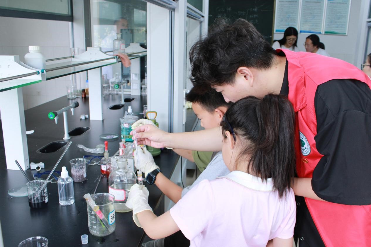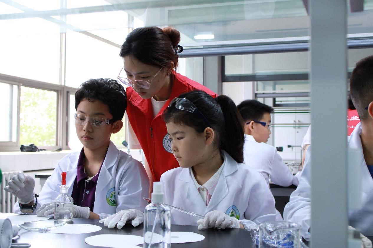 下午,王修中老师在实验室向学员们展示了神奇的物质混合实验和变色实验,将抽象的化学实验以浅显易懂的方式给同学们展现出来,让学员们真正爱上化学。志愿者们开展了“大象牙膏”“火焰掌”两个趣味化学实验,让学生发现奇妙的化学现象,激发学生的化学实验兴趣。同学们进行了实验自由探索,充分发挥自己的好奇心和创造力。