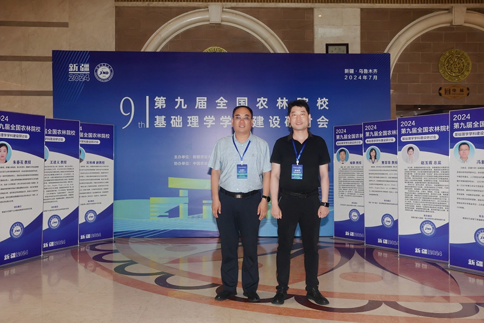 为全面贯彻落实党的二十大精神和习近平总书记关于教育、农业强国和乡村振兴的重要论述,深入开展学习贯彻习近平新时代中国特色社会主义思想主题教育,推进课程思政全面融入数理化等基础理科课程教学,加快推进新农科背景下基础理学学科(专业)建设,实现基础理学学科与农林学科深度交叉融合,全面提高人才培养质量,更好地发挥基础理学学科(专业)在知农爱农新型人才培养中的基础性作用,由新疆农业大学主办的“第九届全国农林院校基础理学学科建设研讨会”于2024年7月25日-7月29日在新疆维吾尔自治区乌鲁木齐市召开,学院李帅帅教授、王修中教授参加此次研讨会。