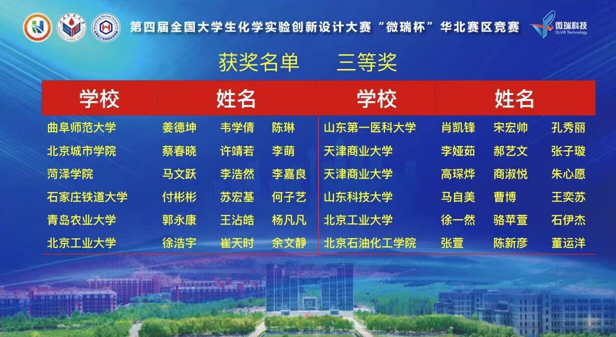 全国大学生化学实验创新设计大赛由中国化学会和教育部高等学校国家级实验教学示范中心联席会主办的全国性大学生学科竞赛,入选教育部高等教育学会全国普通高校大学生竞赛排行榜,是化学类唯一的全国A类赛事。竞赛规则首先按东北、华北、华东、华中、华北、西北和西南七个分赛区举行初赛和复赛,然后再进行全国总决赛。今年华北区竞赛由山东师范大学承办,初赛参赛学校包括北京市、天津市、河北省、山东省的80余所院校的220支队伍参赛,经过初审,进入复赛的由来自60余所院校的126支队伍组成,竞赛内容包括新创实验、改进实验(包括教学实验仪器创制或改进)、科普实验三类。竞赛成绩由作品成绩和答辩成绩两部分组成,各占50%。