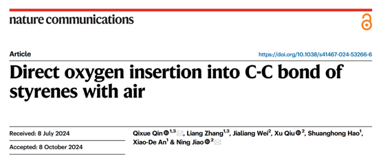 2024年10月18日,青岛农业大学45分钟过瘾拔萝卜视频秦启学副教授在国际著名期刊Nature Communications在线刊登了最新研究成果“Direct Oxygen Insertion into C-C Bond of Styrenes with Air”(以空气作为氧源实现苯乙烯碳碳单键的直接氧原子插入反应)。