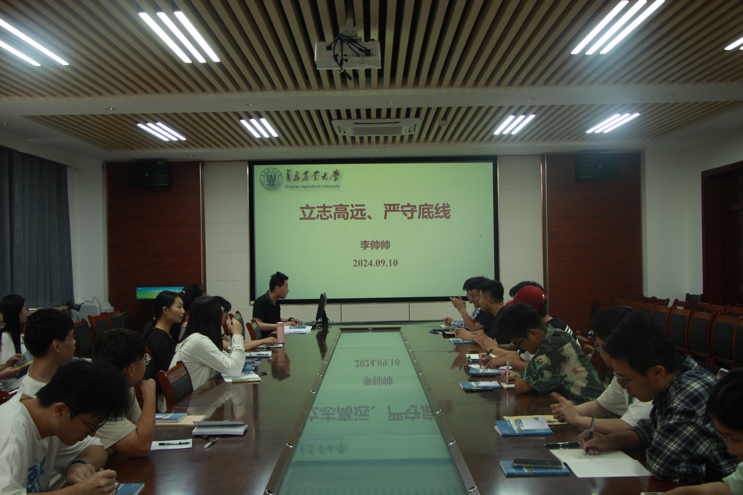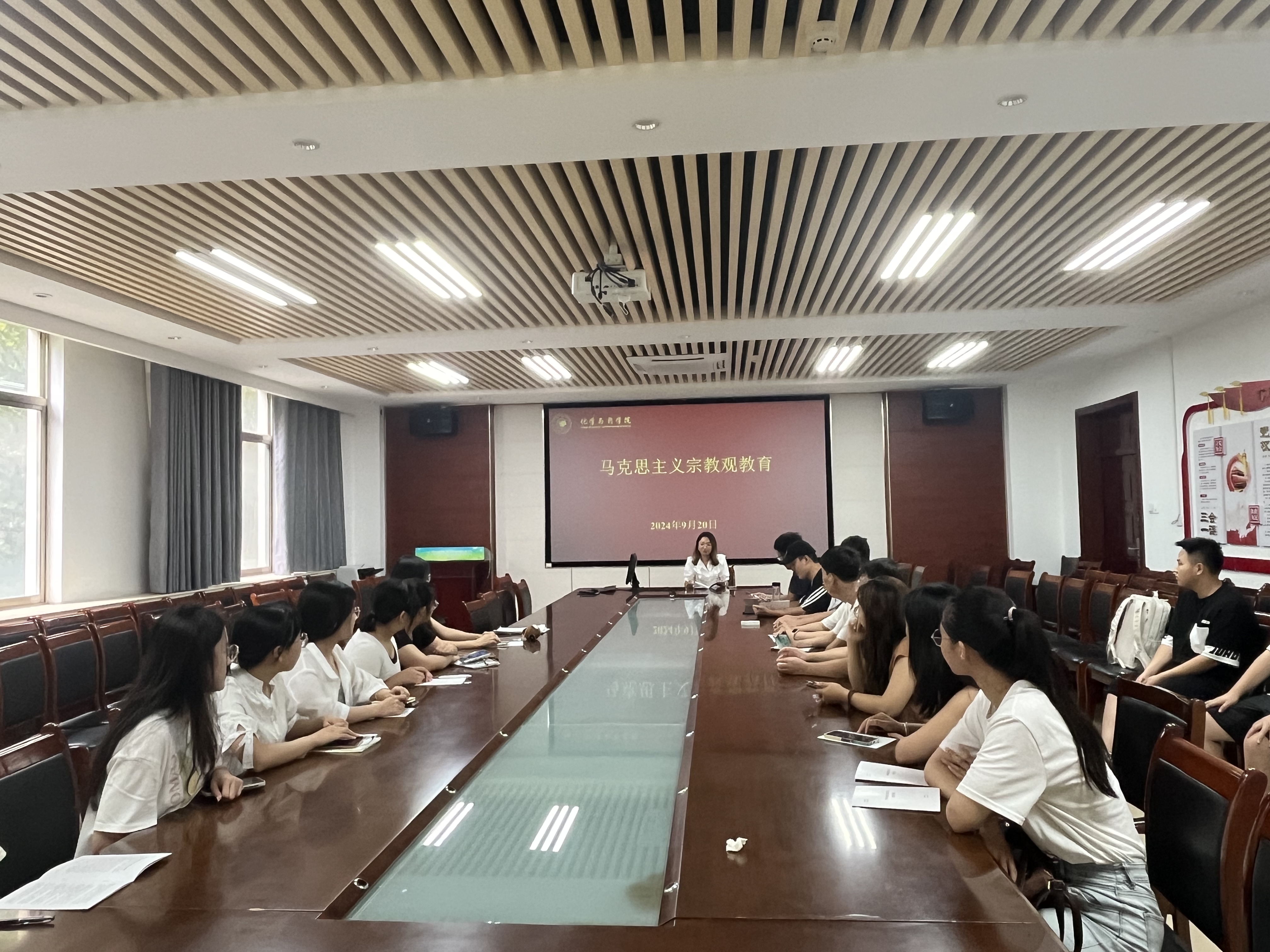 9月14日,辛鑫带领集体学习《青岛农业大学研究生手册》、《青岛农业大学研究生管理规定》、《青岛农业大学研究生纪律处分办法》等一系列规章制度,就各类奖助学金、日常及科研外出请销假流程、管理要求等管理规定进行了详细的解释,引导研究生不仅要形成正确的学风,还要树立良好的作风,自觉遵守校规校纪。随后,辛鑫讲解马克思主义宗教观教育,以马克思主义为指导,详细阐述了马克思主义宗教观的核心内容。她强调,研究生作为我国高等教育的高端人才,应当具备坚定的马克思主义信仰,自觉抵制各种错误思想,包括宗教极端思想,鼓励研究生要深入学习马克思主义理论,用科学的世界观和方法论武装头脑,为我国社会主义事业贡献力量。