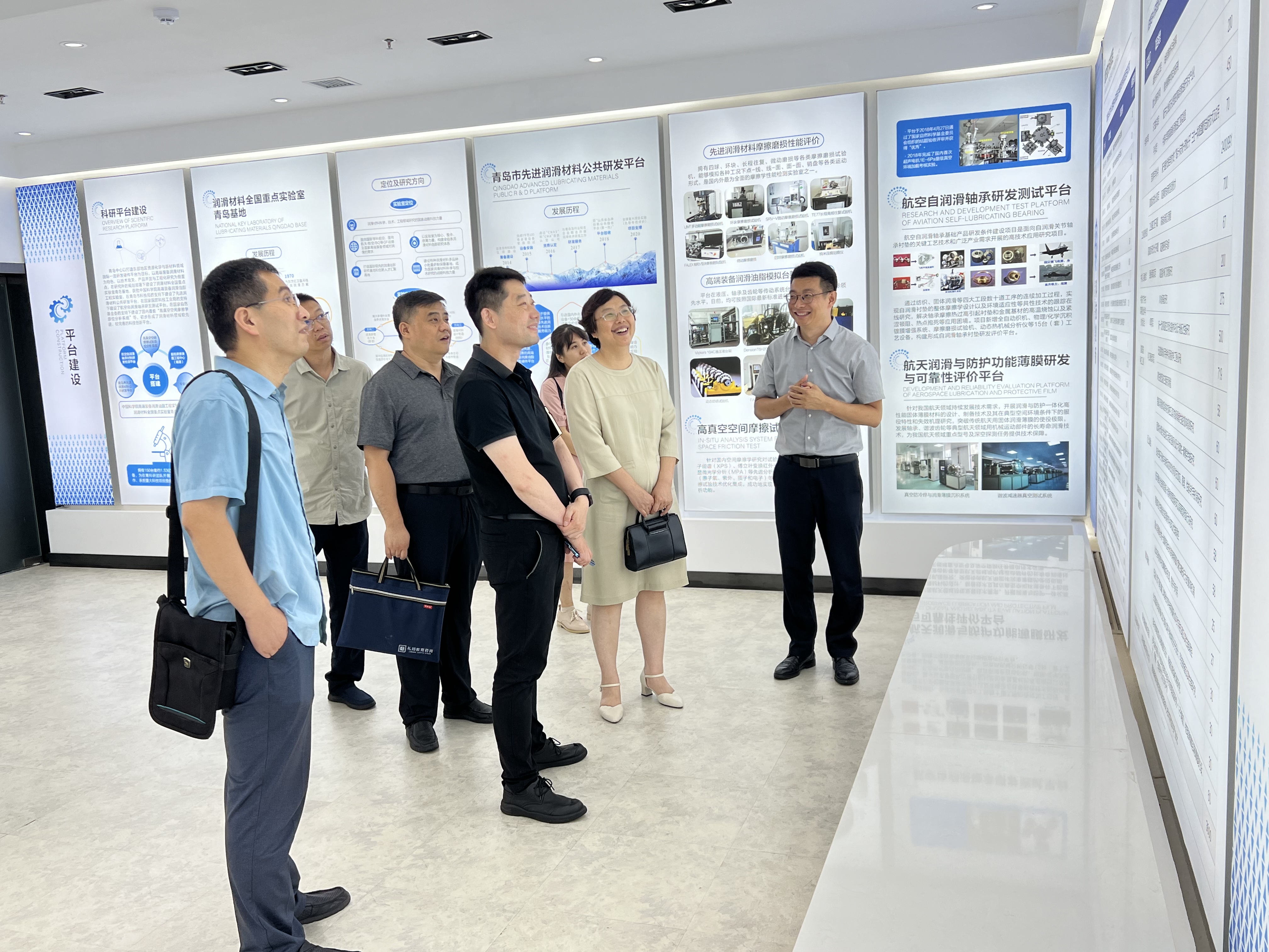 王道爱带领学院一行,参观了中科院兰州化学物理研究所青岛基地展厅和科研平台,并对目前正在开展的项目以及所取得的研究成果进行分享。