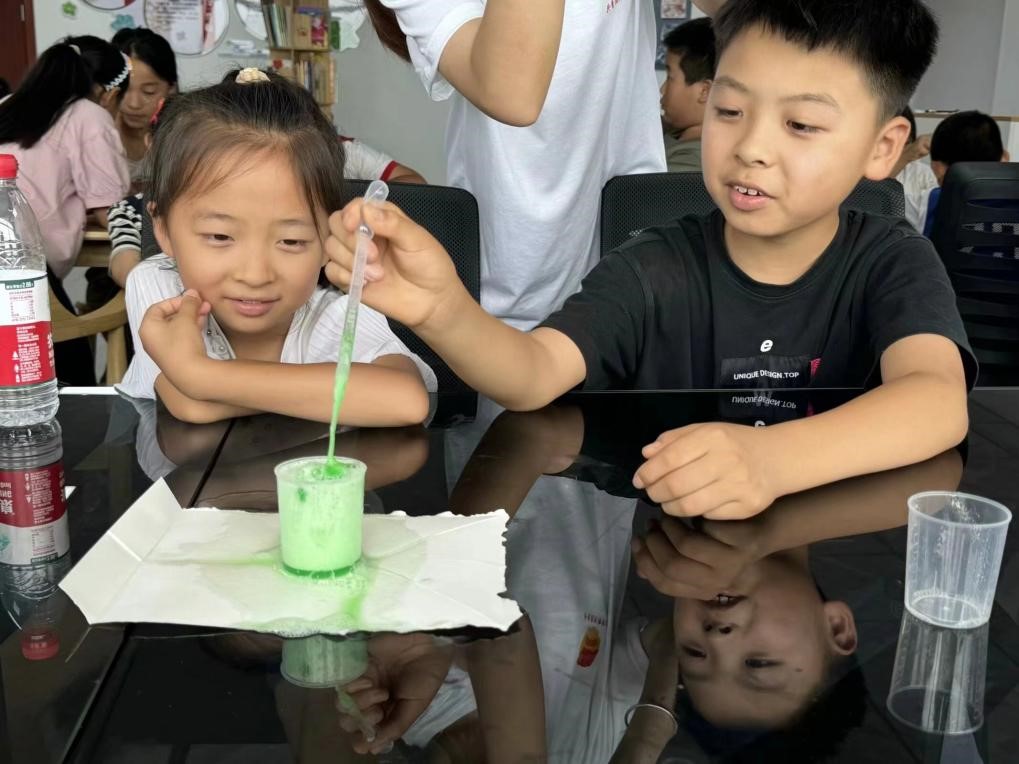 图为孩子们操作实验具体流程 尹晓雅 摄