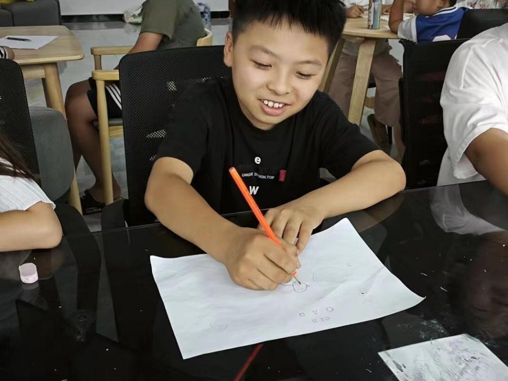 图为孩子认真用笔画小动物 王晓宇 摄