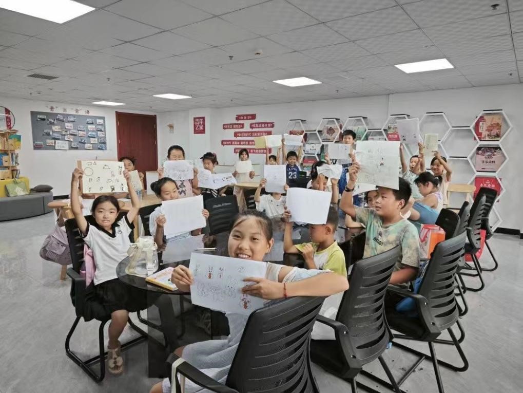图为孩子们展示美术课的成果 张春阳 摄