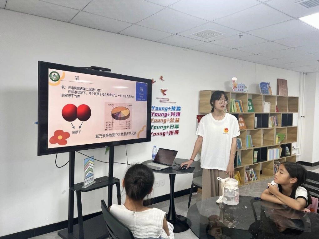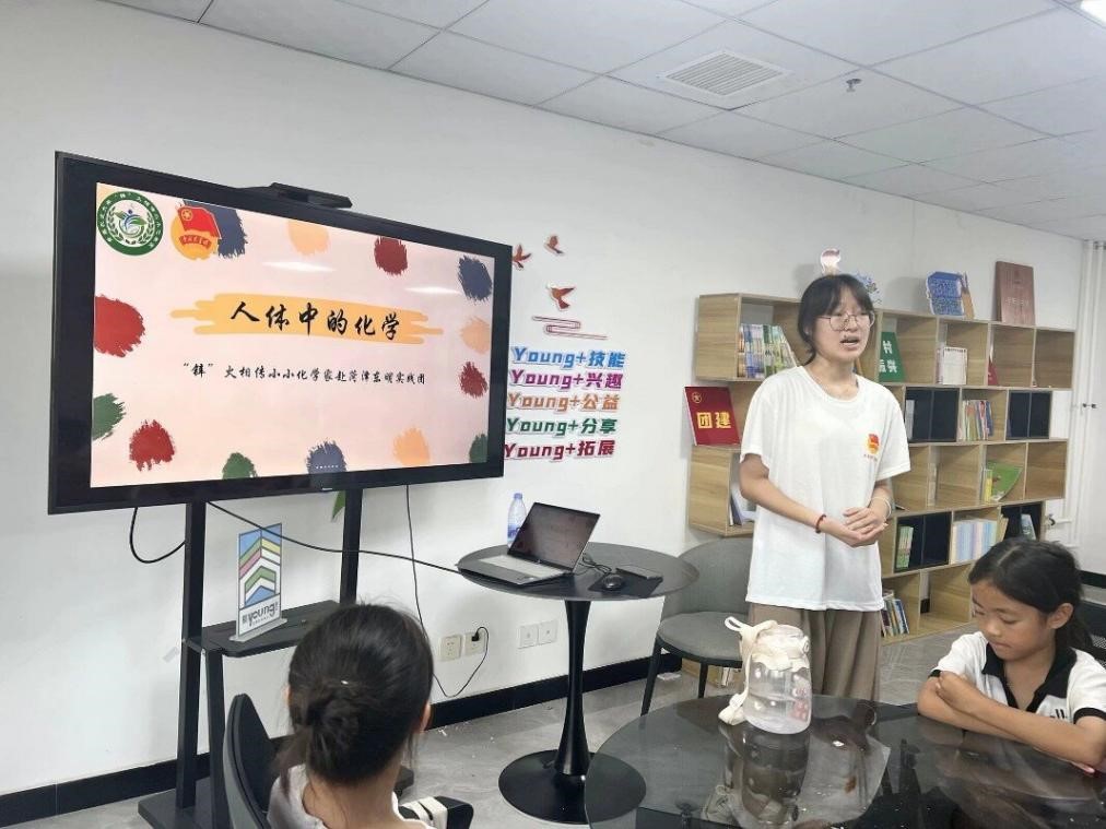 孩子们对化学的热爱尤为显著,特别是对人体中的化学知识怀揣着浓厚的兴趣。人体化学无疑是一个既复杂又精妙的研究领域,它全面涵盖了人体内部多种化学元素、化合物以及它们之间错综复杂的相互作用机制。支教团成员王晓宇巧妙地将这一知识领域引入课堂,通过向孩子们介绍人体中的化学元素,以及展示那些神奇的化学反应,极大地激发了孩子们的好奇心。王晓宇采用鼓励式的教育方法,鼓励孩子们分享对元素的理解,并结合相关教学视频的播放,使得课堂变得既生动又有趣。