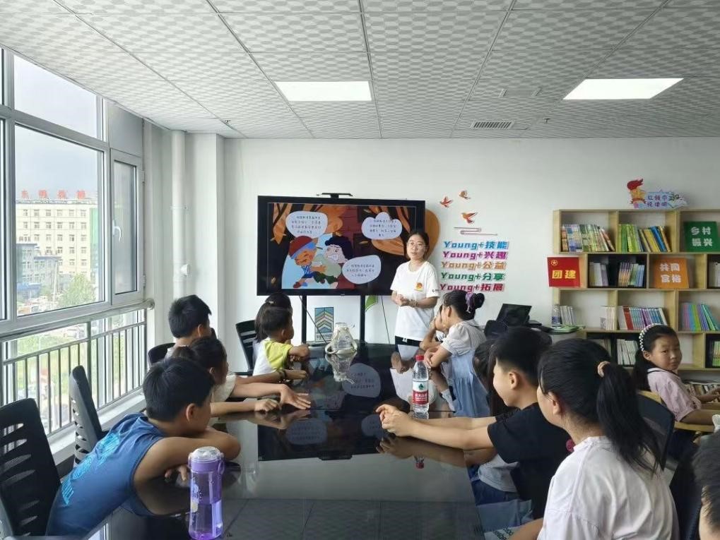 图为支教团成员尹晓雅向孩子们讲解什么是校园霸凌 张春阳 摄