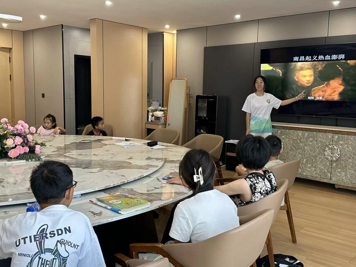 清晨的第一缕阳光透过窗户,照亮了教室的每一个角落。上午八时整,支教活动准时拉开序幕。首先,队员邓亦菲以饱满的热情,为孩子们带来了《抗美援朝》主题教育。她通过生动的讲述和珍贵的图片资料,带领孩子们穿越回那段烽火连天的岁月,感受志愿军战士的英勇与无畏,激发孩子们的爱国情怀和民族自豪感。随后,队员孟家慧接力登场,为孩子们讲述了《南昌起义》的故事,进一步加深了孩子们对中国革命历史的了解,增强了他们的历史使命感和责任感。