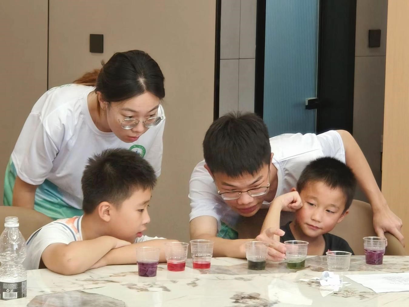 午休过后,下午的课程同样精彩纷呈。首先,队员马嘉昕为孩子们带来了一场别开生面的《紫甘蓝的变色魔法》小实验。在实验中,孩子们亲眼见证了紫甘蓝水溶液加入不同物质后发生的奇妙变化,不仅感受到了化学的神奇魅力,还激发了他们对科学探究的浓厚兴趣。实验结束后,孩子们纷纷表示要更加努力学习科学知识,探索更多未知的奥秘。