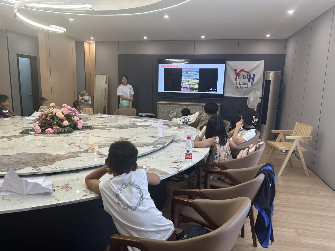 在欢乐的氛围中,支教团队不忘安全教育的重要性。下午五时整,队员李汶晓为孩子们带来了一堂生动的防溺水主题安全教育课。她通过真实的案例和生动地讲解,让孩子们深刻认识到溺水的危害性和防范溺水的重要性。同时,她还向孩子们传授了基本的自救和互救技能,为他们的生命安全保驾护航。