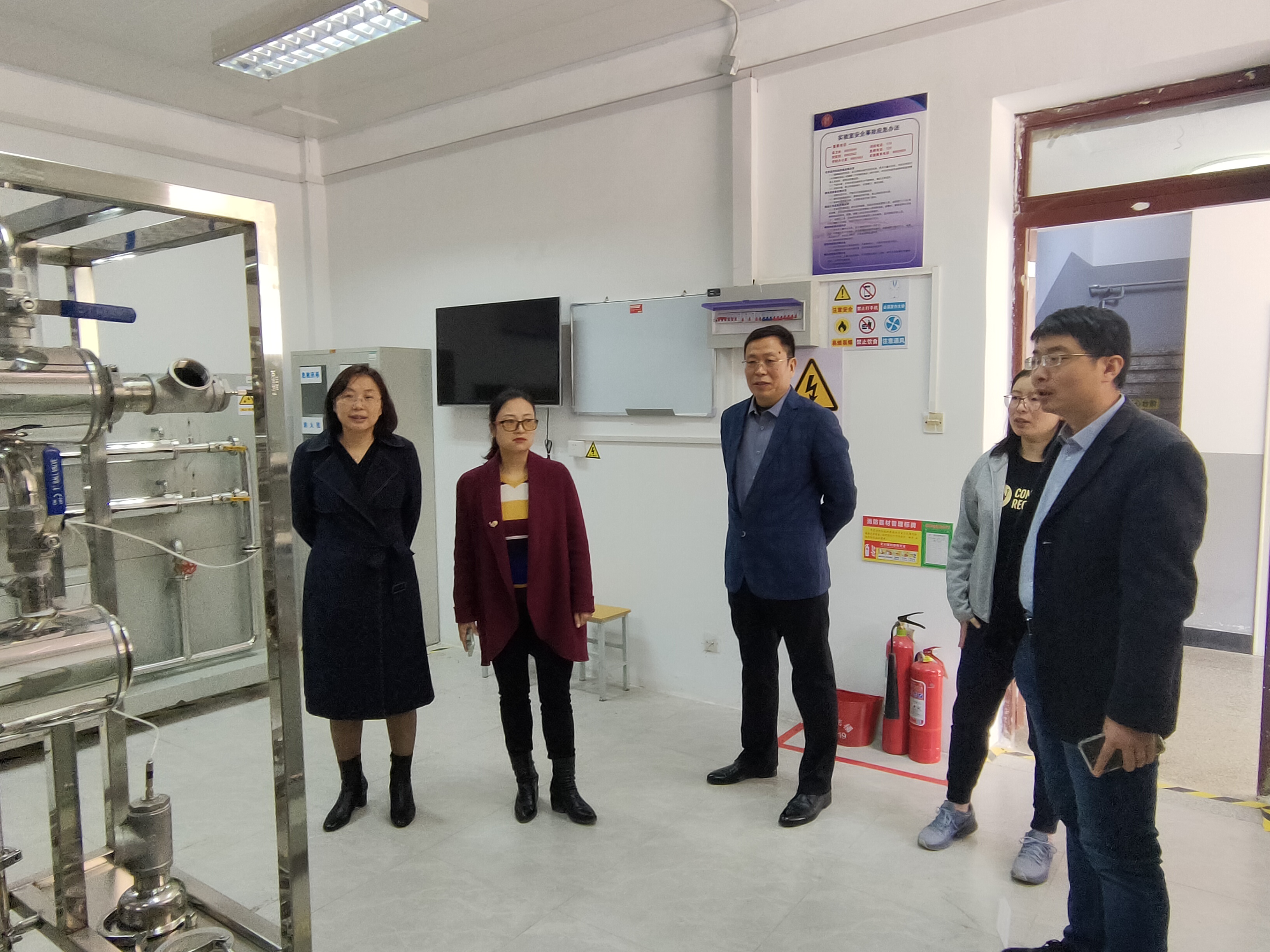 座谈会结束后,龚良玉一行在段志国书记和赵玉潮副院长带领下,参观了烟台大学化学化工学院化工专业实验室,进一步了解了学院实验室的建设规划、实验设备配套及使用效果,深入学习了化工专业工程认证对实验室及设备的具体指标要求,为我院的化学工程与工艺专业的工程教育认证准备工作以及应用化学专业实验室建设提供了借鉴和参考。