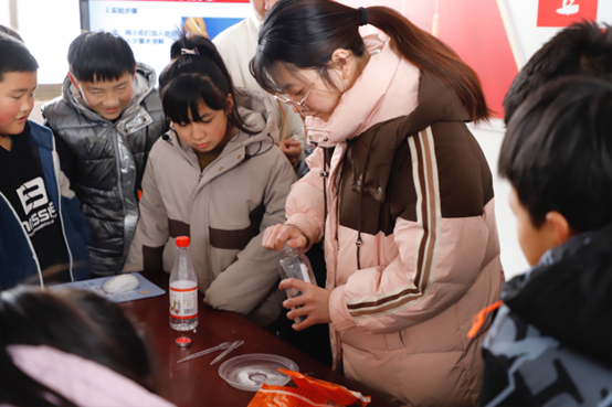 在瓶子吹气球实验中,孩子们迎来了巨大的科学挑战。这个实验不仅让孩子们动手操作,还引导孩子深入思考化学反应的原理。孩子们纷纷提出问题:“怎样用瓶子将气球变大?”“吹进气球里面的是什么呢?”“这个气球是怎么吹起来的呢?”。在实验的过程中,孩子们通过观察、动手操作,一步步揭示了瓶子吹气球的神奇之处。在这些奇妙的化学实验中,小小化学家们不仅在“玩”中学到“真知识”,更是通过寓教于乐的方式点燃了科学的火苗,正是这样一代代科学家才不断诞生,“锌”火相传,生生不息。