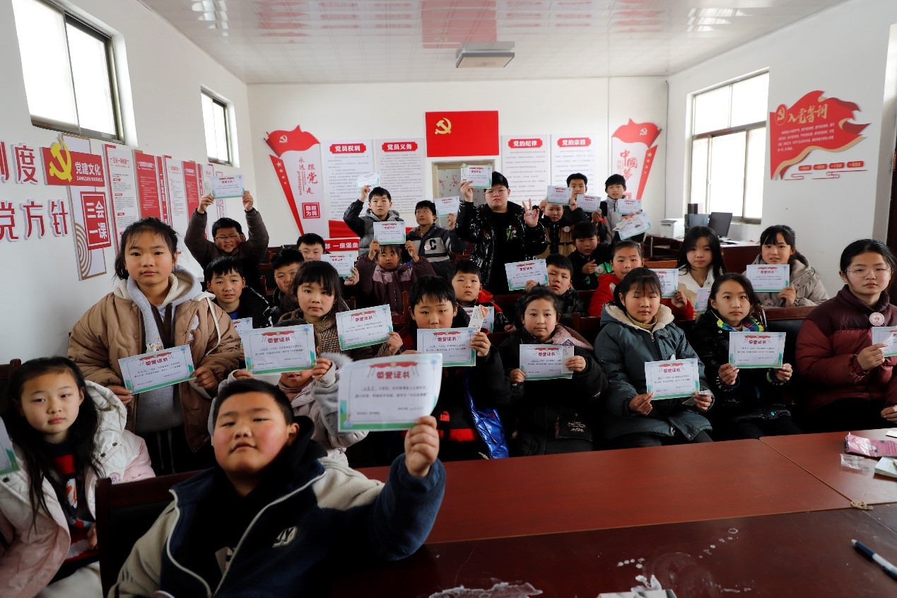 转眼间,支教工作已接近尾声,团队队长刘舒玉为孩子们颁发“小小化学家”奖状,孩子们高高的举着奖状,身上佩戴着获得的徽章,脸上洋溢着开心的笑容。支教仪式结束后,孩子们向支教老师倾诉着自己的想念。“老师,你们下次还来吗?”“老师,我不想让你们走”孩子们不舍的与老师告别。拍照留念后,团队成员踏上了归途。车窗外的风景逐渐远去,孩子们的笑声和欢呼声也在耳边消失,但心中的那份感动和记忆,却永远留在了每个队员的心中,这份爱是无声无息地,像天空中的太阳,虽在寒风刺骨的冬天也显得格外温暖。